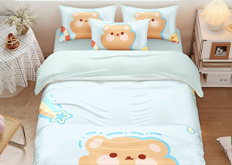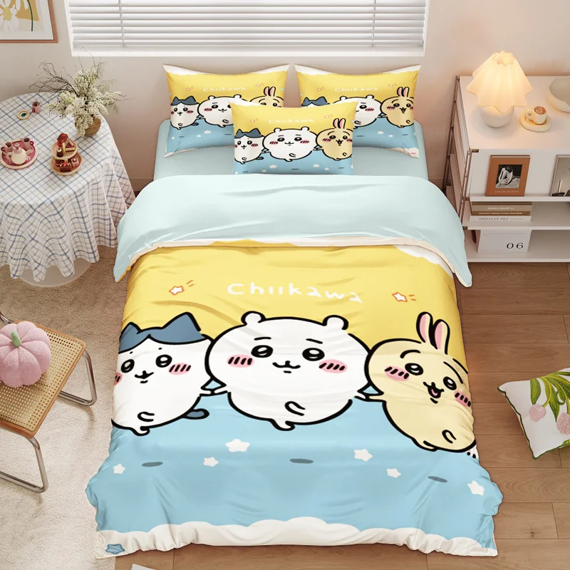 Chiikawa 夏季冰絲涼感四件套|可愛卡通床組|單人宿舍涼被床單組合