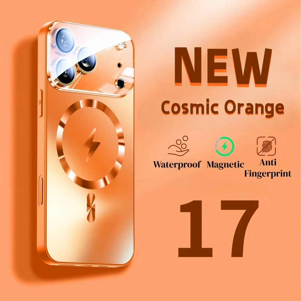 Thunder Cosmic Orange Magnetic Phone Case for IPhone 17 Pro Max Air 13 14 15 16 Pro Max Matte Casing Hard Shockproof Cover